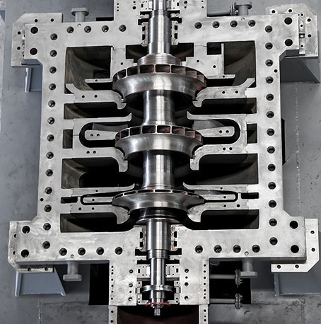 采用可傾瓦支撐軸承+金斯伯雷推力軸承替代固定瓦。可傾瓦軸承瓦塊能隨著轉(zhuǎn)速、載荷及軸承溫度的不同而自由擺動,在軸頸周圍形成多油楔,穩(wěn)定性遠(yuǎn)高于固定瓦瓦軸承,整機(jī)運(yùn)行穩(wěn)定,振動低。