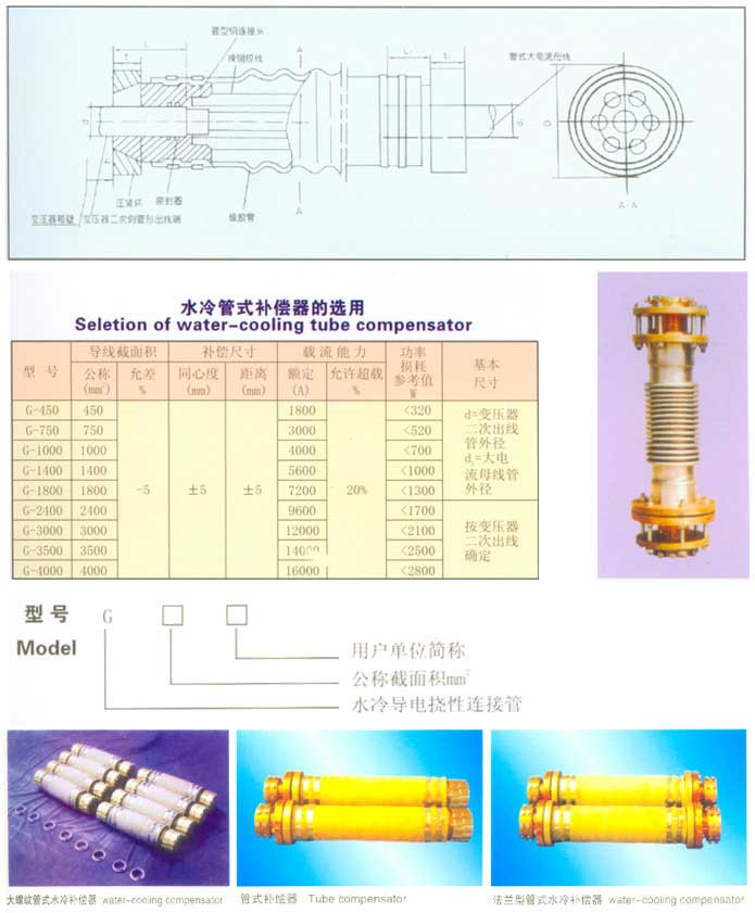 用于礦熱爐(電石爐、鐵合金爐、工業硅爐、黃磷爐等)短網系統,既用于變壓器二次出線端與固定銅管的連接(補償器A型接頭并可用作電弧爐、鋼鐵爐補償器),也用于固定銅管與爐內可動銅管(連接銅瓦)之間的連接一水冷電纜。其中補償器可補償安裝誤差,熱脹冷縮和吸收短網的電磁力引起的振動