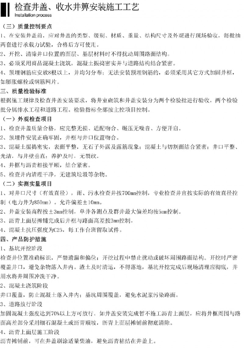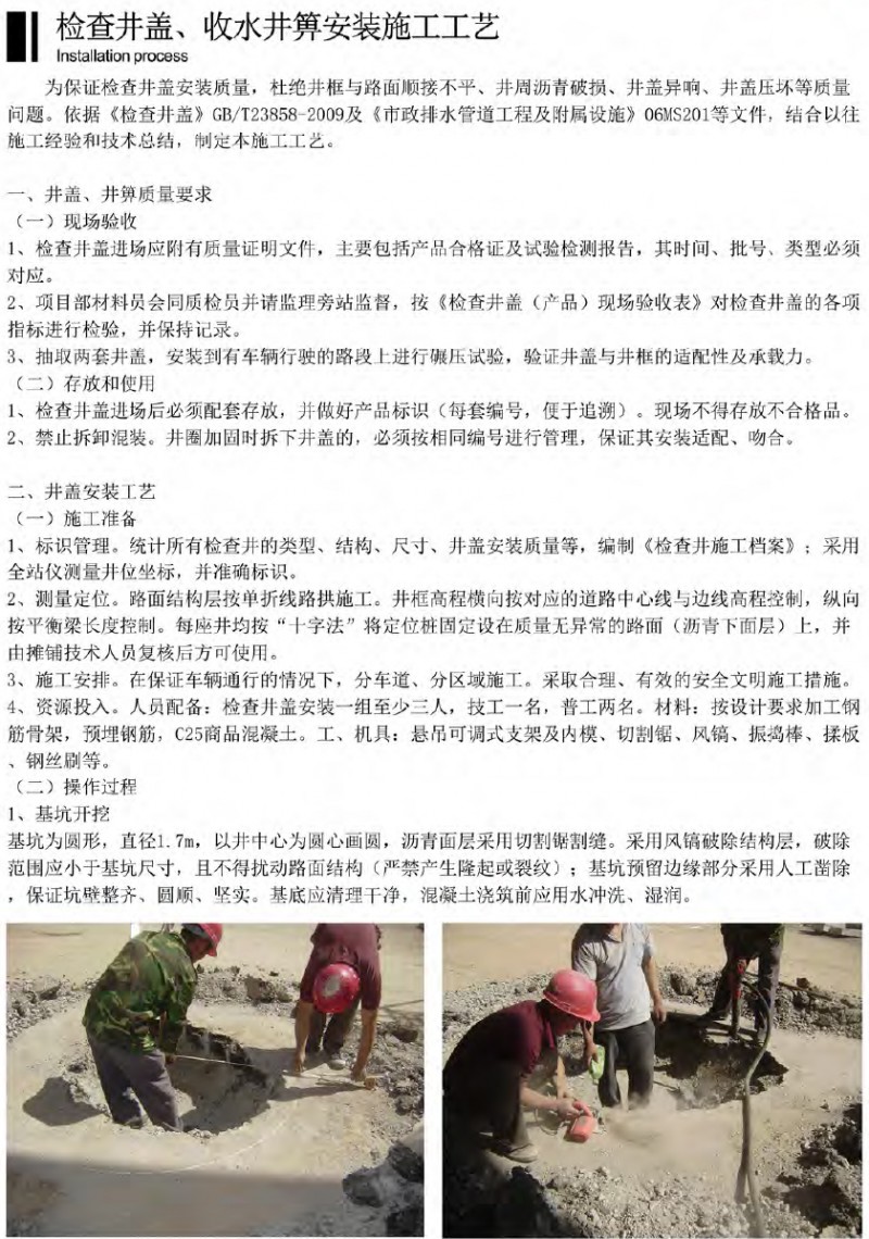 檢查井蓋、收水井箅安裝施工工藝
